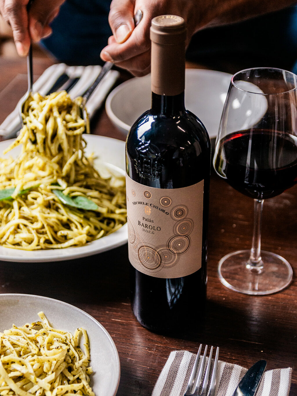 La meilleure porte d’entrée vers ces crus est leur Palas Barolo, qui assure plaisir et buvabilité instantanés, tout en restant abordable. Pour Alberto, c’est en regardant un film ou en dévorant un bon livre que se déguste le mieux le Barolo. « C’est parfait pour boire deux heures de temps, car il a besoin de respirer ». Barolo est évidemment un excellent partenaire de viandes grillées et braisées, comme le veau, le bœuf ou le gibier, les fromages bleus forts et les truffes.