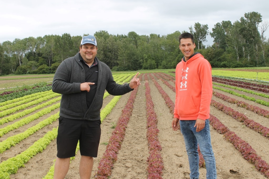 Philippe et son fils Elliott, qui l’accompagnait pour la tournée, s’en sont donné à cœur joie en parcourant les rangs de framboisiers ensemble en quête de la framboise parfaite. La terre de Mathieu est magnifique et l’ambassadeur a été particulièrement charmé par les différentes variétés de laitues cultivées et leur bel amalgame de couleurs. « Honnêtement, chapeau! », a dit Philippe à Mathieu. « J’en reviens pas que t’aies juste 26 ans. Je te confirme que ça n’a rien à voir avec moi à 26 ans. C’est bon, on a besoin de relève comme toi », a-t-il déclaré, admiratif. En effet, le travail de Mathieu est remarquable, et ce n’est qu’un début.