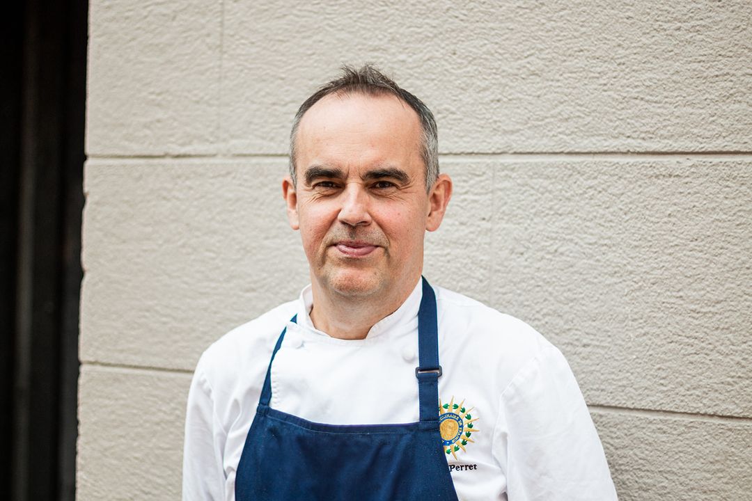 Né en Bourgogne, puis exilé dans les Amériques depuis plus de 25 ans (« Et marié à une Québécoise! », souligne le principal intéressé), Olivier Perret exprime pleinement cette double identité dans sa cuisine : la saisonnalité des produits locaux, mariée à grande maîtrise des techniques et du savoir-faire de la gastronomie française. C’est la somme de toutes ses expériences, de Lyon, où il a fait ses premiers pas aux fourneaux, jusqu’à Montréal, où il occupe depuis plus de 10 ans à titre de chef exécutif du Renoir, en passant par Washington et Chicago, aux États-Unis.
