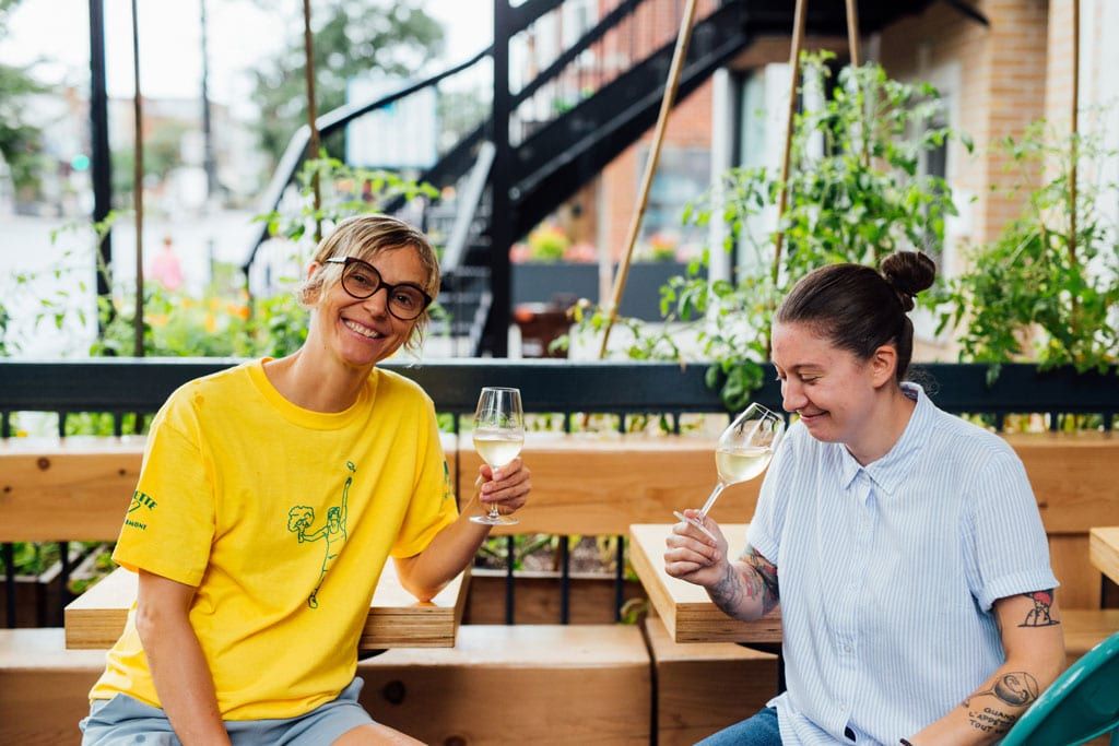 Simone se met à rêver d’une buvette comme les Européens savent si bien en faire depuis si longtemps; animée, avec des enfants, des parents, des personnes âgées, tout le monde debout, assis, qui s’amuse — un endroit inclusif, convivial et sans protocole. “Je pensais à un bar à vins sans façon, avec un grand comptoir, avec des pains, des charcuteries, des fromages, de la brandade — elle m’explique cela en agitant les mains et les bras, sourire aux lèvres. Je ne voulais pas un resto au départ, je voyais vraiment un bar, je trouve souvent que c’est plus convivial et animé qu’un restaurant. ” Pourquoi l’Avenue du Parc? “J’ai grandi sur Parc! Je prenais l’autobus sur Parc pour aller au Collège Français, j’ai passé mon adolescence sur Parc. J’ai un attachement profond pour cette rue; elle ne ressemble à rien, elle est zonée commerciale, il y a des juifs, des Anglais, des Portugais, des Grecs, des madames d’Outremont. J’adore. Je souhaitais vraiment quelque chose sur l’Avenue du parc”. L’endroit devait s’appeler la Buvette, pour son nom évocateur, mais sa partenaire d’affaires souhaitait quelque chose de plus personnel, soit Chez Simone; entre les cinq proprios, le nom est devenu la Buvette Chez Simone.